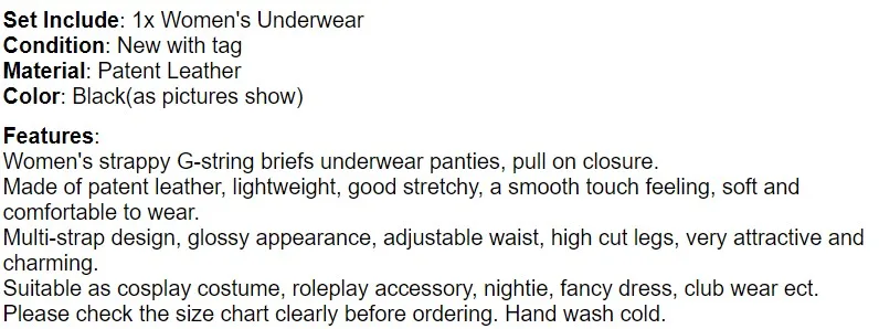 | Model Number | Women Black Patent Leather Strappy Underwear |